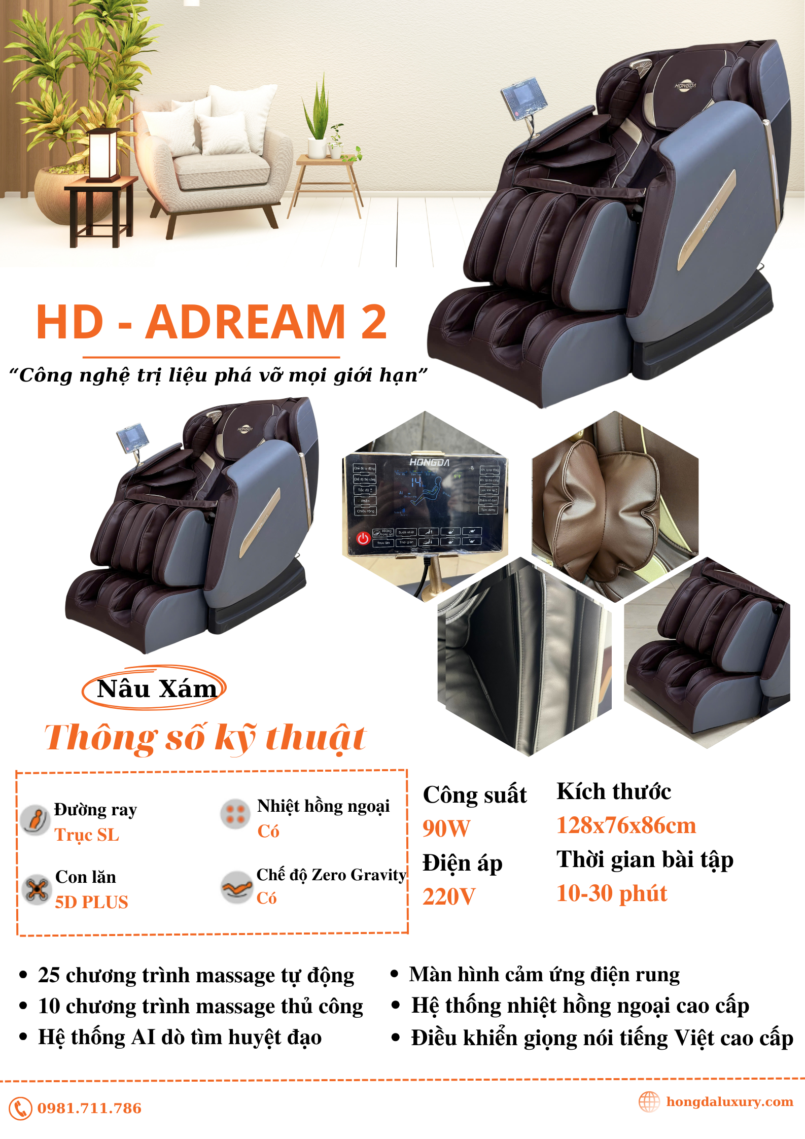Ghế massage HD – ADREAM 2 mang màu sắc trang nhã, sang trọng .